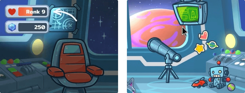 Click on the back button to later return to your own SpaceDen, or you can also find and check out a different player’s SpaceDen if you wish.