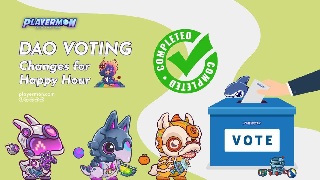 In the spirit of collaboration and community, we initiated a DAO Voting to hear your valued feedback and suggestions. 📥🧐 Your voices matter, and this voting aimed to understand how we can encourage more user involvement and foster healthy competition through significant change in the length of our happy hour! We appreciate your engagement and enthusiasm in making Playermon an even more dynamic universe!