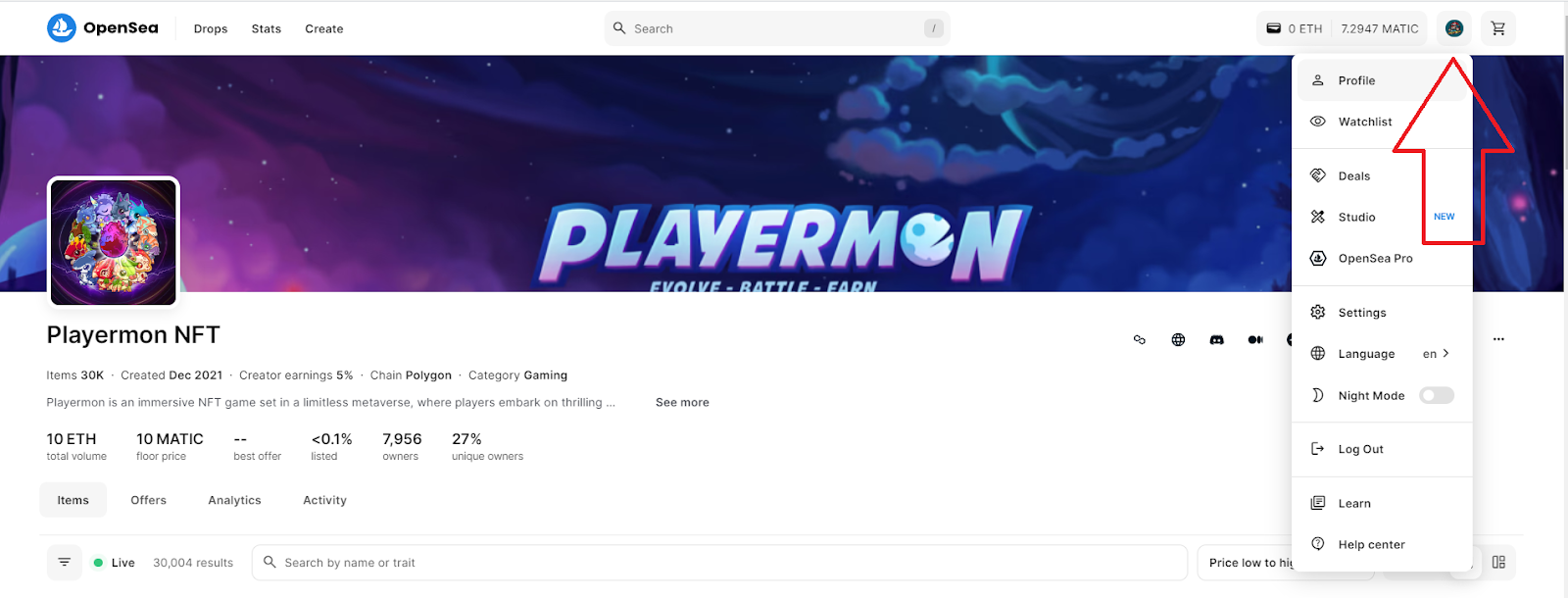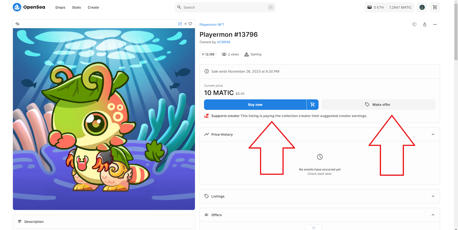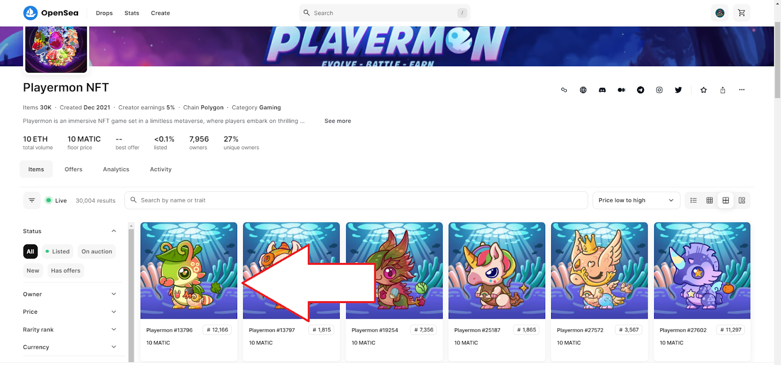 Buying Playermon NFTs on OpenSea is a straightforward process. Here's a step-by-step guide: