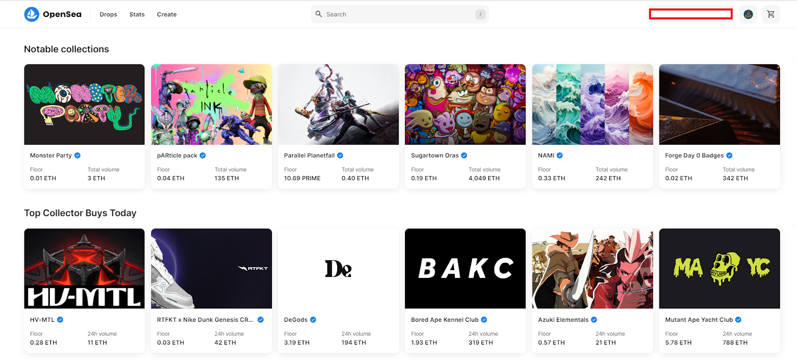 - Go to your OpenSea profile by clicking on your wallet address in the top right corner.